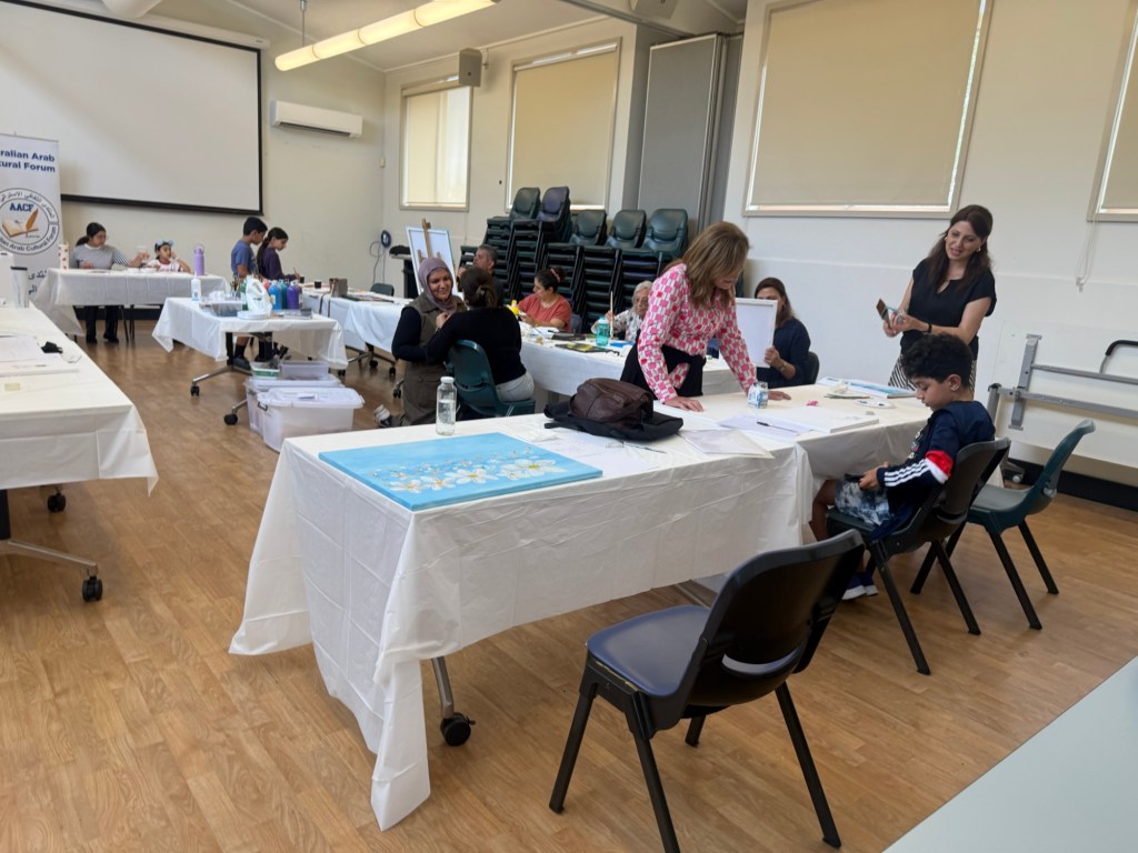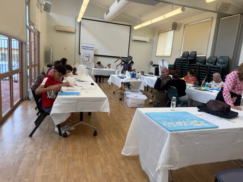 Today, Sunday 15/ 2/ 2026 the first painting workshop for the year 2026 was held as part of the Painting Festival organized by the Australian Arab Cultural Forum. A number of families and participants took part in the workshop, and everyone spent an enjoyable time practicing drawing and coloring while engaging in discussions on various social topics.